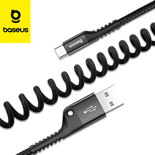 Baseus Fish Eye Spring Data Cable USB vers Lightning 2A 1m – Noir (CALSR-01)