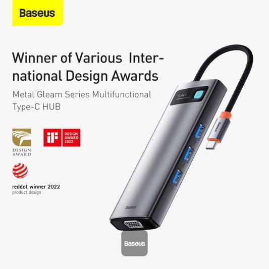 Baseus Adapteur 8-in-1 Type-C HUB / Type-C to HDMI*1 / VGA*1 /USB3.0*3 / Type C PD*1 / SD&TF*1 – gris-WKWG050013